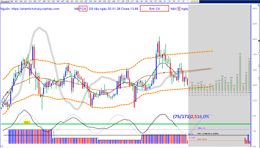 Quan sát Ảnh C4 (Nến 6 ngày), chúng ta thấy mã FCN đang vận hành trên trục xương sống 171 ngày. Ghi chú trong hồ sơ xác nhận một thông tin đắt giá: