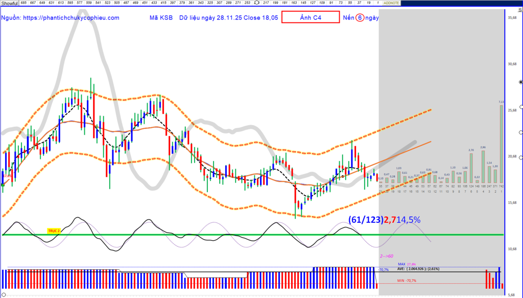 Hồ sơ phân tích KSB (Khoáng sản Bình Dương) phiên 28.11.25 hôm nay mang đến một tín hiệu chấn động: Một chu kỳ lớn 123 ngày vừa chính thức khởi động với mức năng lượng (Biên độ) lên tới 2.70.